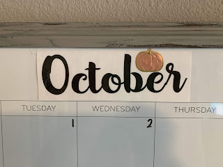 Step 5 (Optional): I wanted to have a cute changeable monthly sticker. You can use any font in word and adjust the sizing based on your whiteboard. I bought a font pack from Etsy and you can find the link to what I bought HERE. After you print out the font you use a laminating machine (I got one from Walmart for $20), once you laminate it you cut it out to your liking. I used tape to post it onto the whiteboard, and used a cute pumpkin sticker for decoration. This is a completely optional step and you don't have to do it unless you want to. I opted to do it since I don't have writing that looks this amazing.